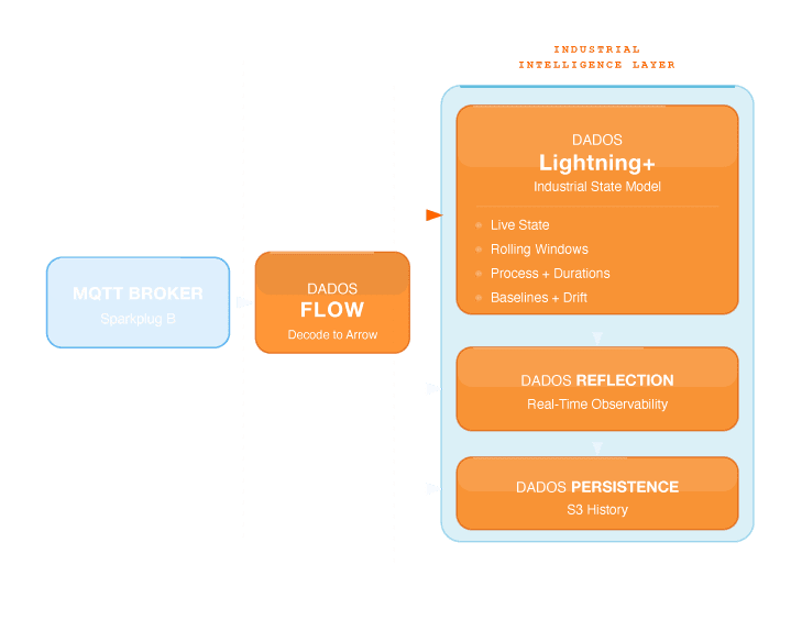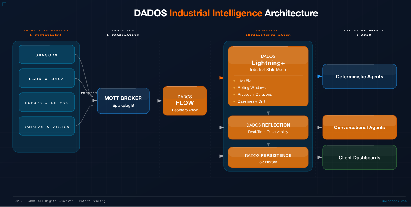 In the DADOS architecture, Reflection plays a very specific role: it exposes the live operational state of the factory in a structured, queryable form so that humans, applications, and AI systems can see and navigate the system the same way the machines do.