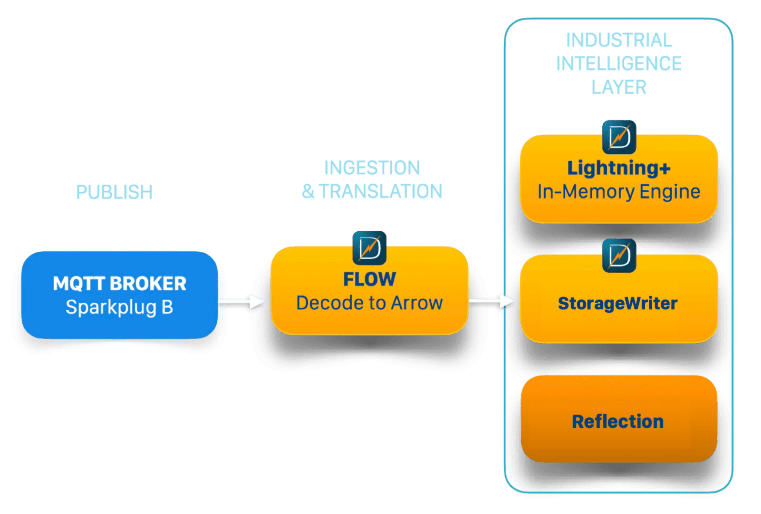 Sits next to the broker. Decodes Sparkplug, enforces schema, and converts telemetry into clean, decision-ready state as it arrives. No downstream delay.